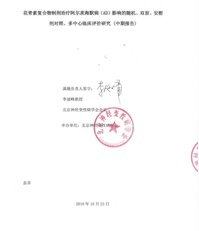 除此之外,順憶在北京航天中心醫(yī)院、北京協(xié)和醫(yī)院等8家醫(yī)院進行臨床試驗,試驗證明順憶能夠顯著改善AD患者整體認知功能障礙,并已獲得臨床中期報告(下圖所示僅為報告的首頁和尾頁)